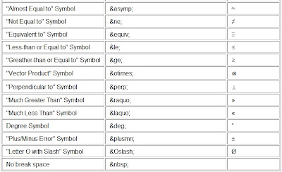 Note:All characters are of the format: (ampersand)(charname)(semicolon).